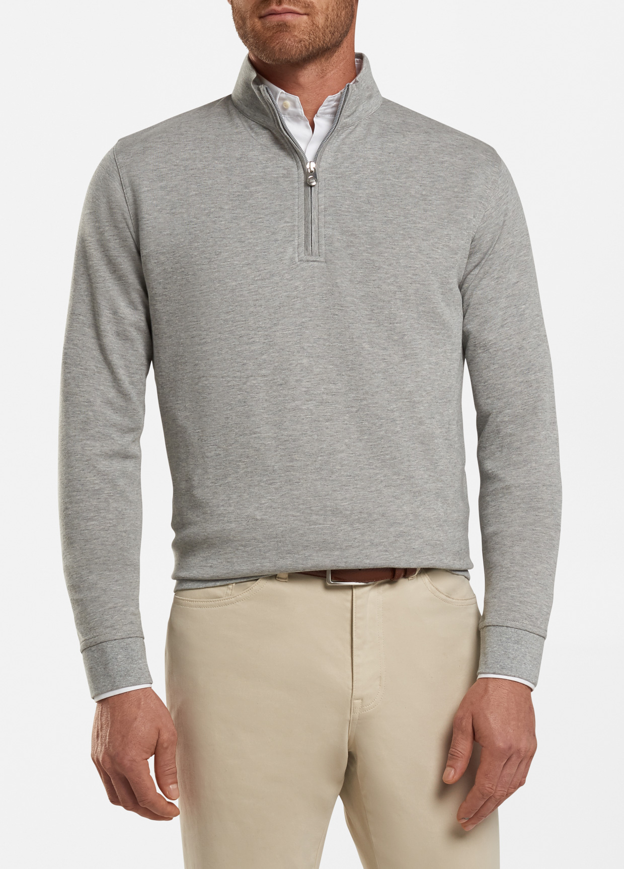 Our Heather Interlock Quarter-Zip is made from soft, breathable, pearl-washed cotton and features an elegant, satiny mélange aesthetic. Finished with contrast trim at quarter-zip, rib-knit cuffs and hem. Available in new seasonal colors to coordinate back to Peter Millar sport shirts and trousers.