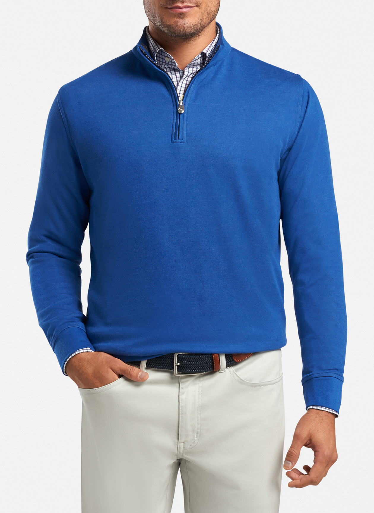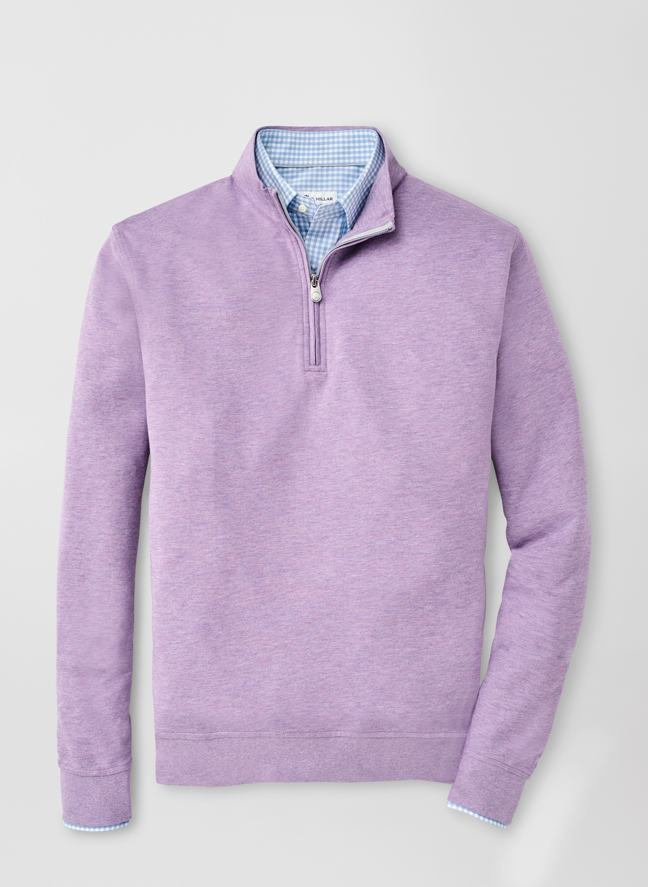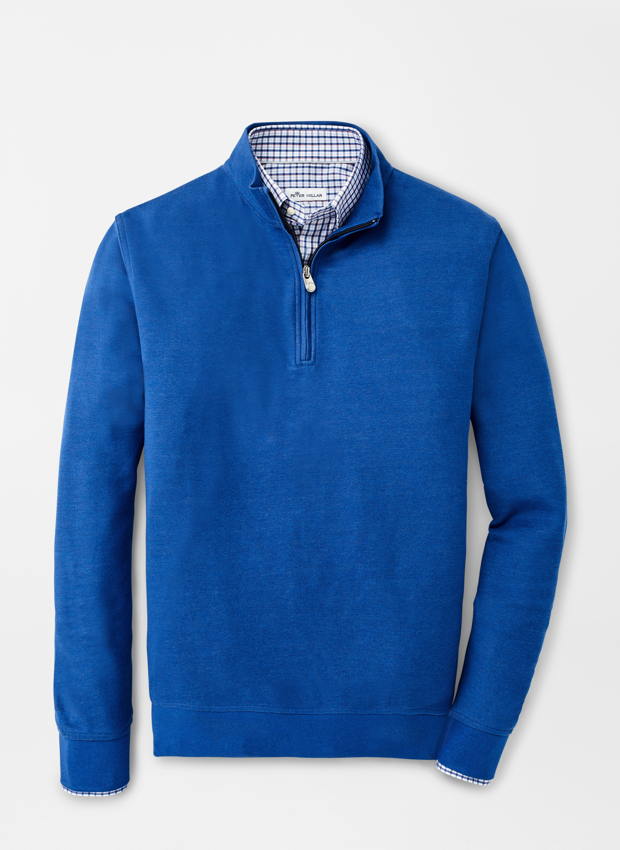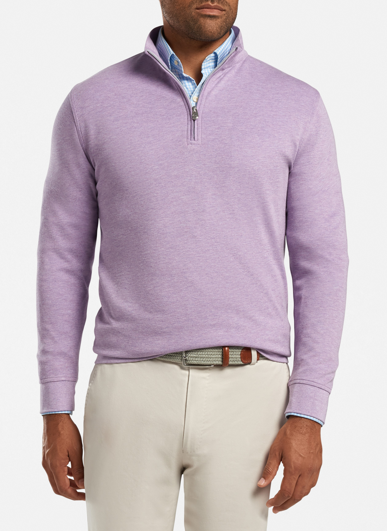 Our Heather Interlock Quarter-Zip is made from soft, breathable, pearl-washed cotton and features an elegant, satiny mélange aesthetic. Finished with contrast trim at quarter-zip, rib-knit cuffs and hem. Available in new seasonal colors to coordinate back to Peter Millar sport shirts and trousers.