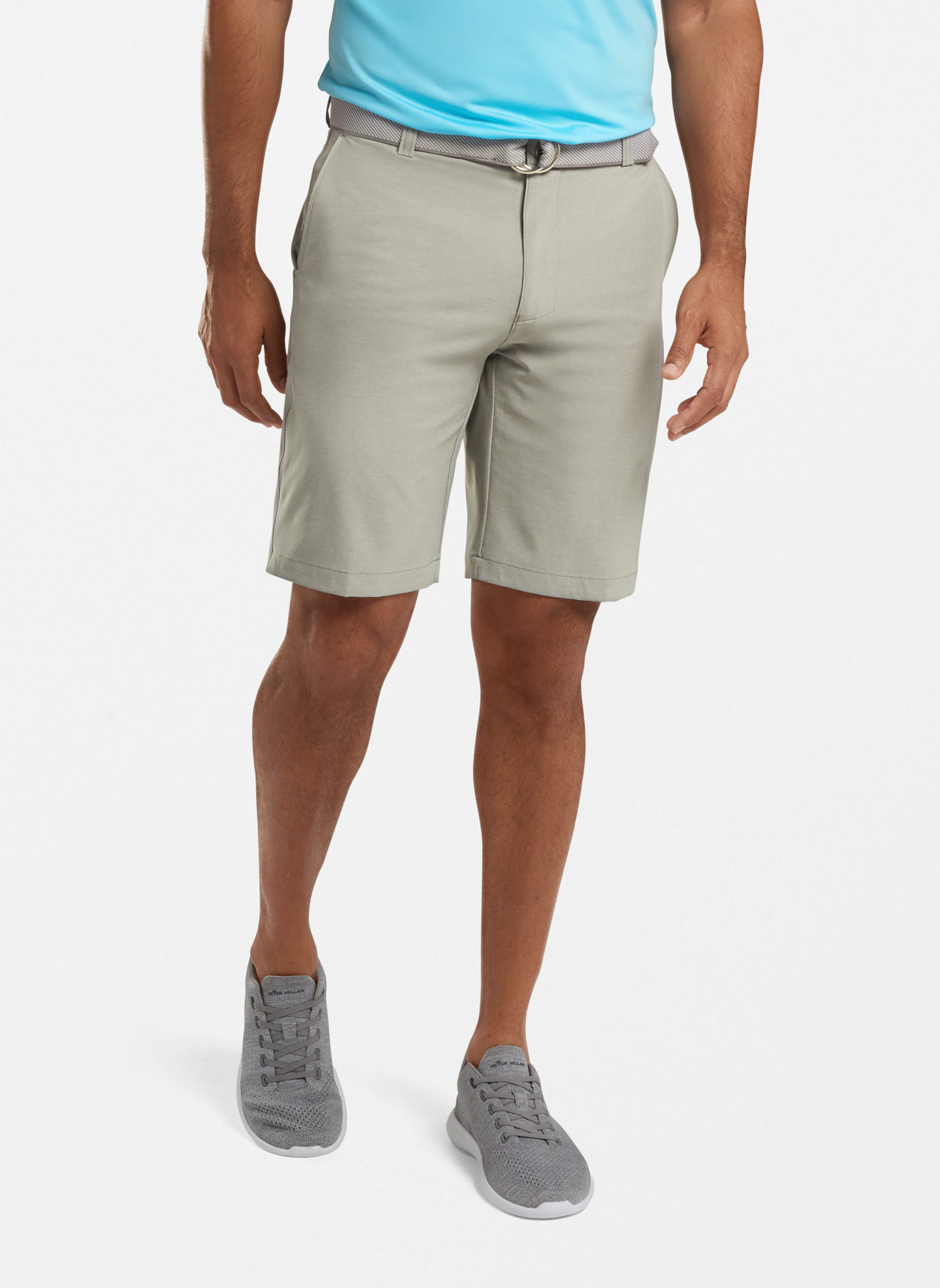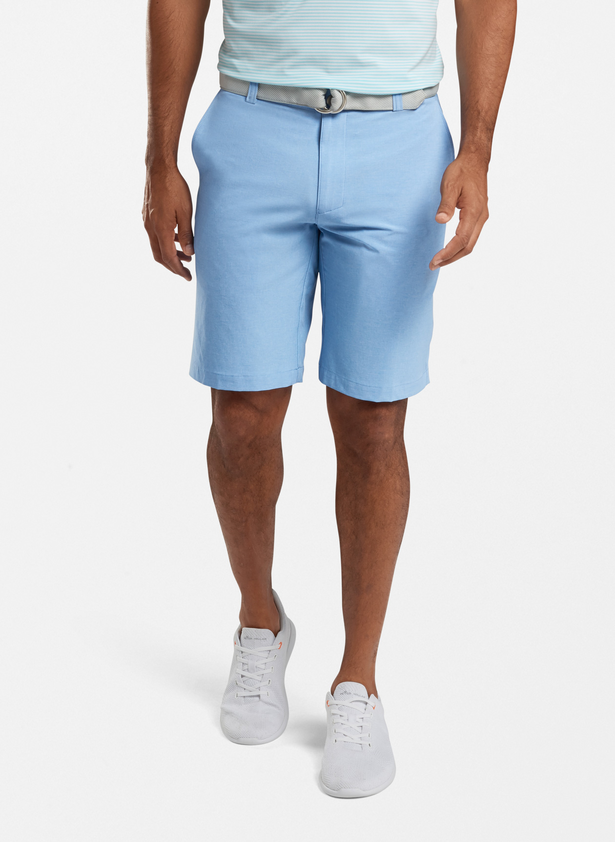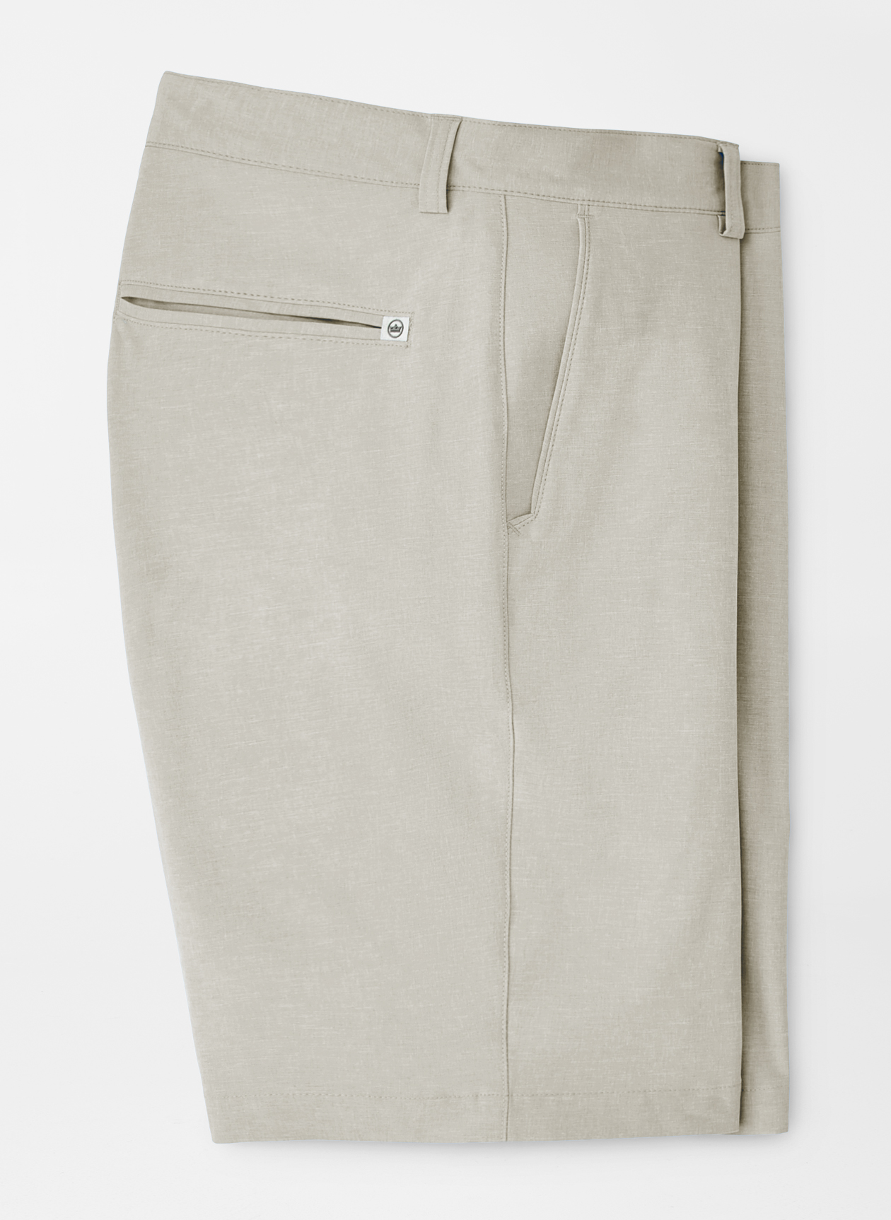 A seasonal must-have, the Shackleford Performance Shorts effortlessly doubles as coursewear and the perfect shorts for casual afternoons around town. They’re premium performance fabric blend offers four-way stretch, water-resistance, and easy-care, while the mélange fabrication lends a dimensional, substantial appearance. Styled with welt back pockets, quarter-top side pockets and a zip-fly button closure.